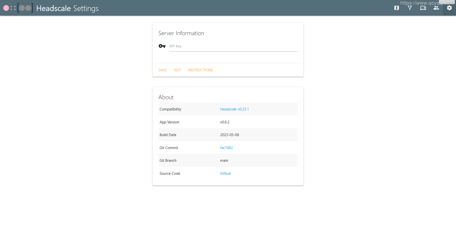 其中 /home/docker/headscale/config 为上面服务端的映射目录,这两个目录需要一致。HS_SERVER 和 DOMAIN_NAME 填写自己的域名1。KEY 是用来加密待会需要保存的 apikey 的字符串,使用命令 openssl rand -base64 32 生成。