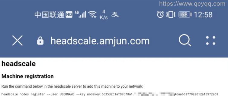 docker exec -it headscale headscale nodes register --user hz --key nodekey:xxxx