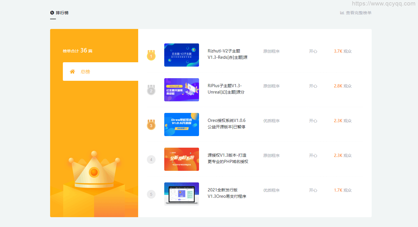 五、排行榜模块