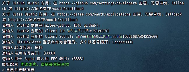 6、根据提示输入Client ID、Client secrets、GitHub ID,标题和端口号自定义即可。