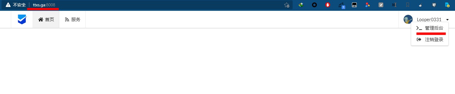 7、完成后,在浏览器地址栏输入 http://域名:8008 就能打开哪吒面板了。然后点击“管理后台”进行配置。