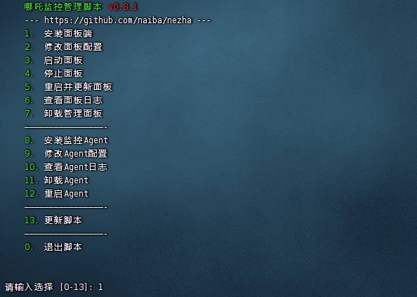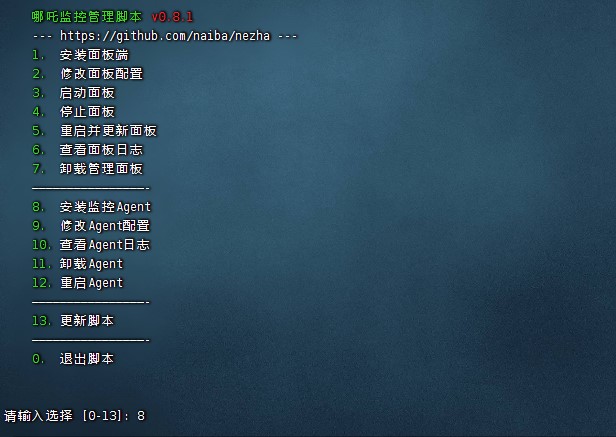 2、在被监控的服务器内执行与上面相同的命令,选择 8 安装监控Agent。