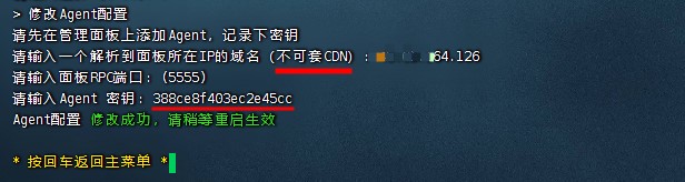 3、填入服务端主机 IP 解析的域名(不可以套CND)。这里我没有准备域名,就直接填入 IP 了,然后填入对应的服务秘钥。