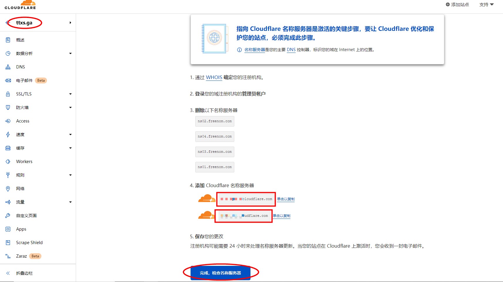 2、将域名托管到Cloudflare(免费提供CDN加速、网络优化、安全防护、网络分析以及应用等服务),这一步看个人意愿,可以不操作。