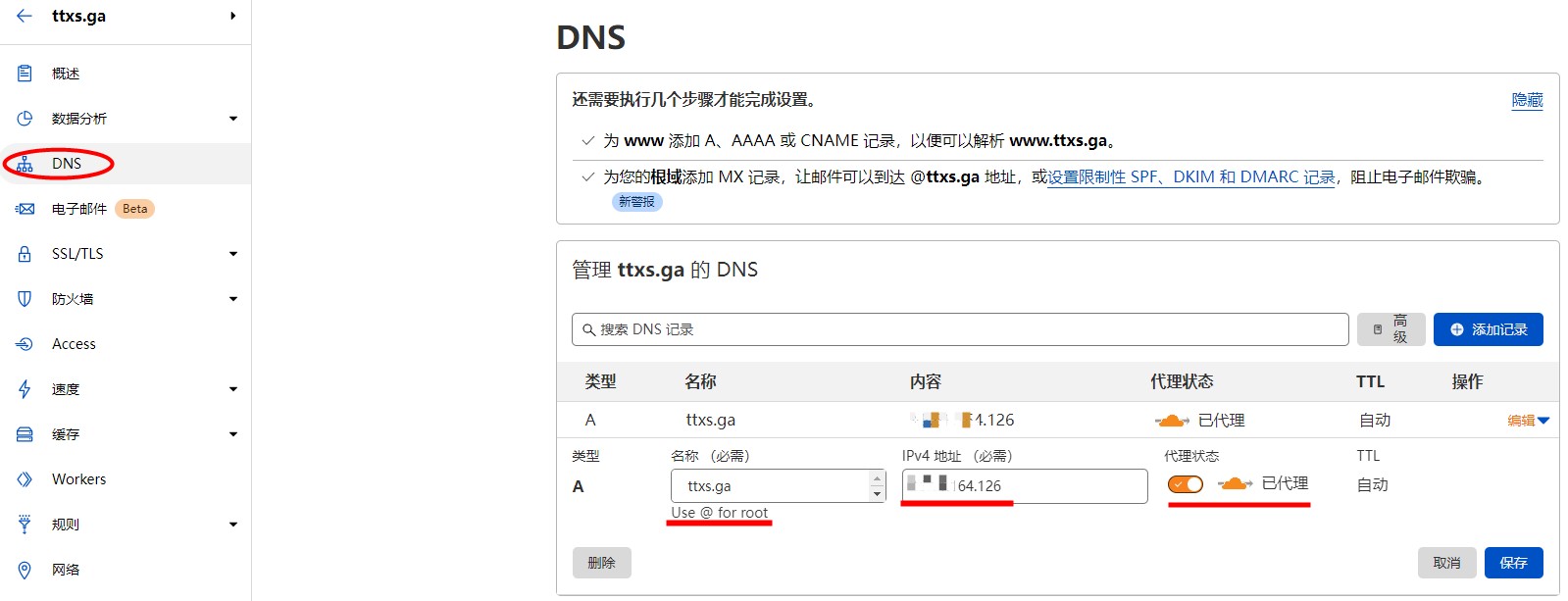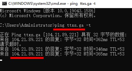 3、添加A记录,解析域名,并验证。Ping 域名返回的 IP 与实际 IP 不同,说明 CDN 代理成功。