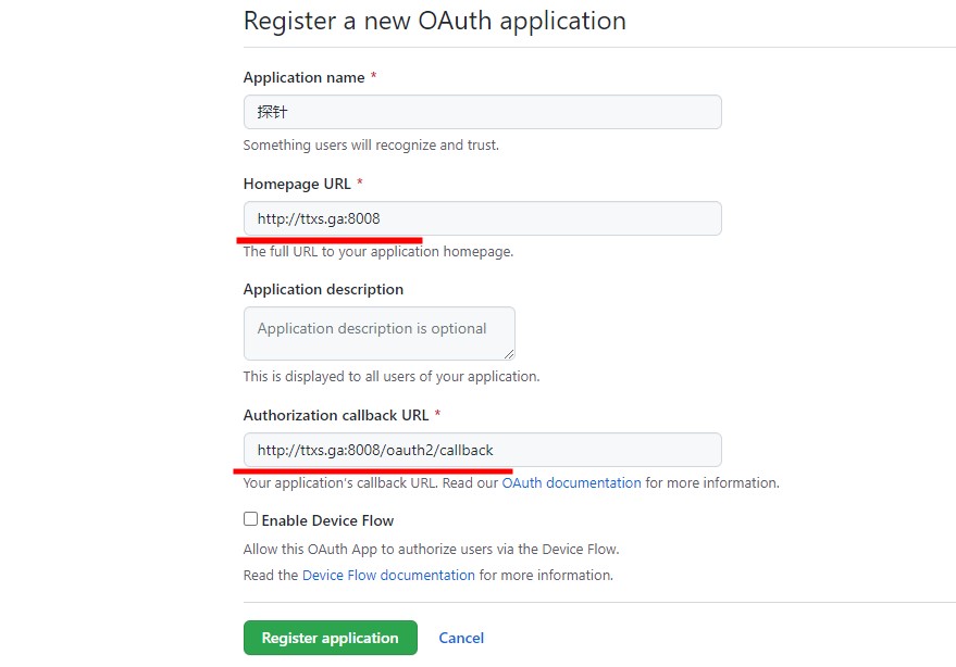 在Homepage URL栏输入:http://域名:8008(若设置了反带8008端口,且开启SSL,则改为:https://域名),在Authorization callback URL栏输入:http://域名:8008/oauth2/callback(若设置了反带8008端口,且开启SSL,则改为:https://域名/oauth2/callback)。