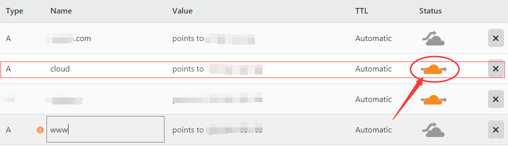 由于cloudflare的CDN只能将加速的 cloud.example.com 回源至它本身,无法回源到其他域名上(www.example.com),因此我在服务器上添加了一个反向代理,用 cloud.example.com 来代理我的主域名 www.example.com 。当然如果你不想那么麻烦,那么就将CDN直接套主域名上,加速 www.example.com 即可,大家可以通过自己的实际需要相应修改。