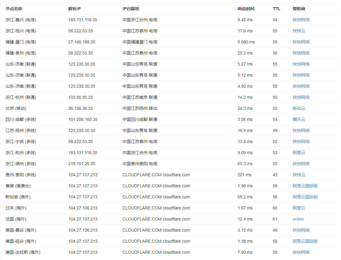 可以看到国内IP都会走国内的腾讯云节点,而海外则走cloudflare,网站延迟基本控制在了30ms以内。