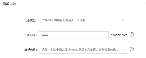 修改方法同上。关键部分来了,在域名控制台点击bobobk.com右边的解析,进入到如下界面