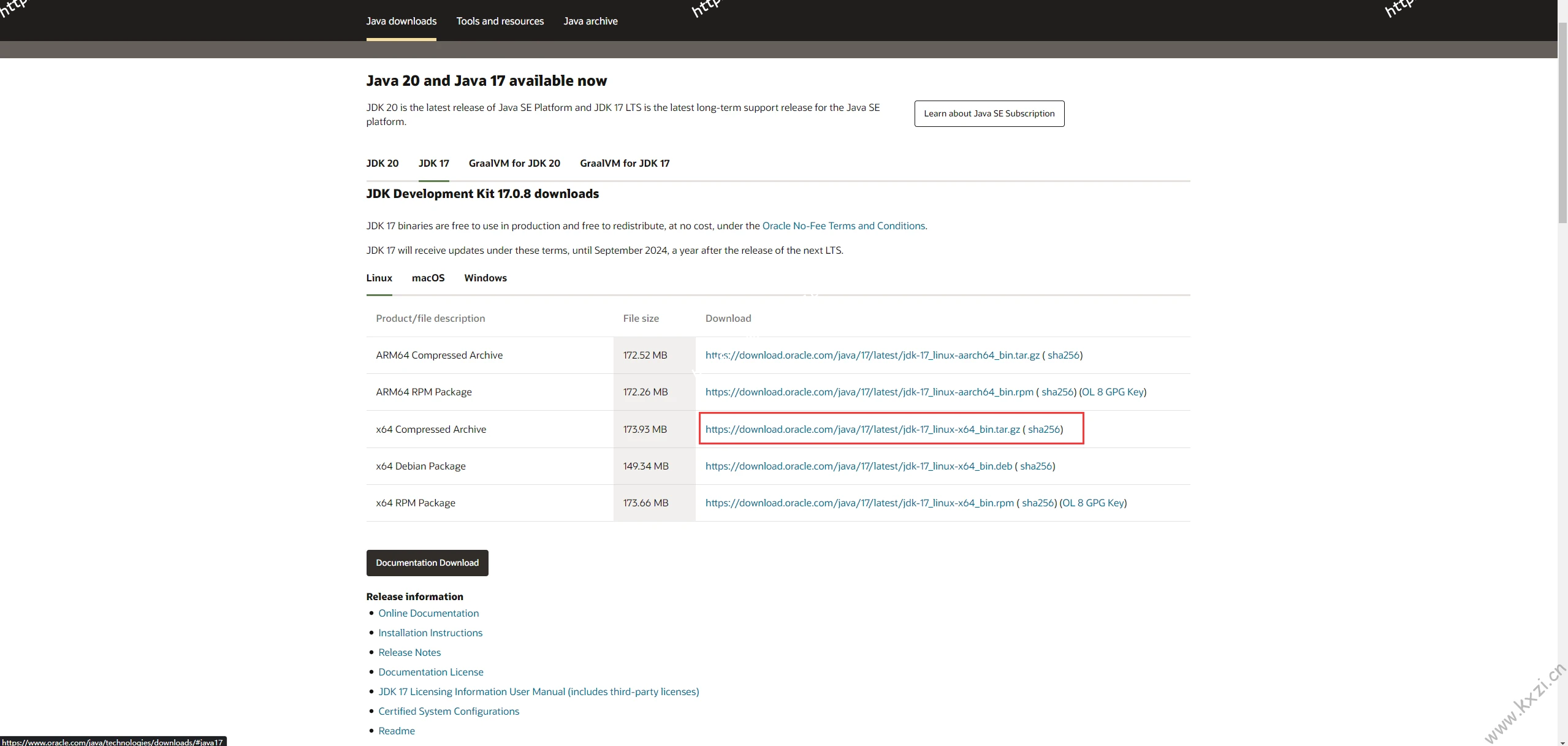 JDK17官方下载地址:https://www.oracle.com/java/technologies/downloads/#java17