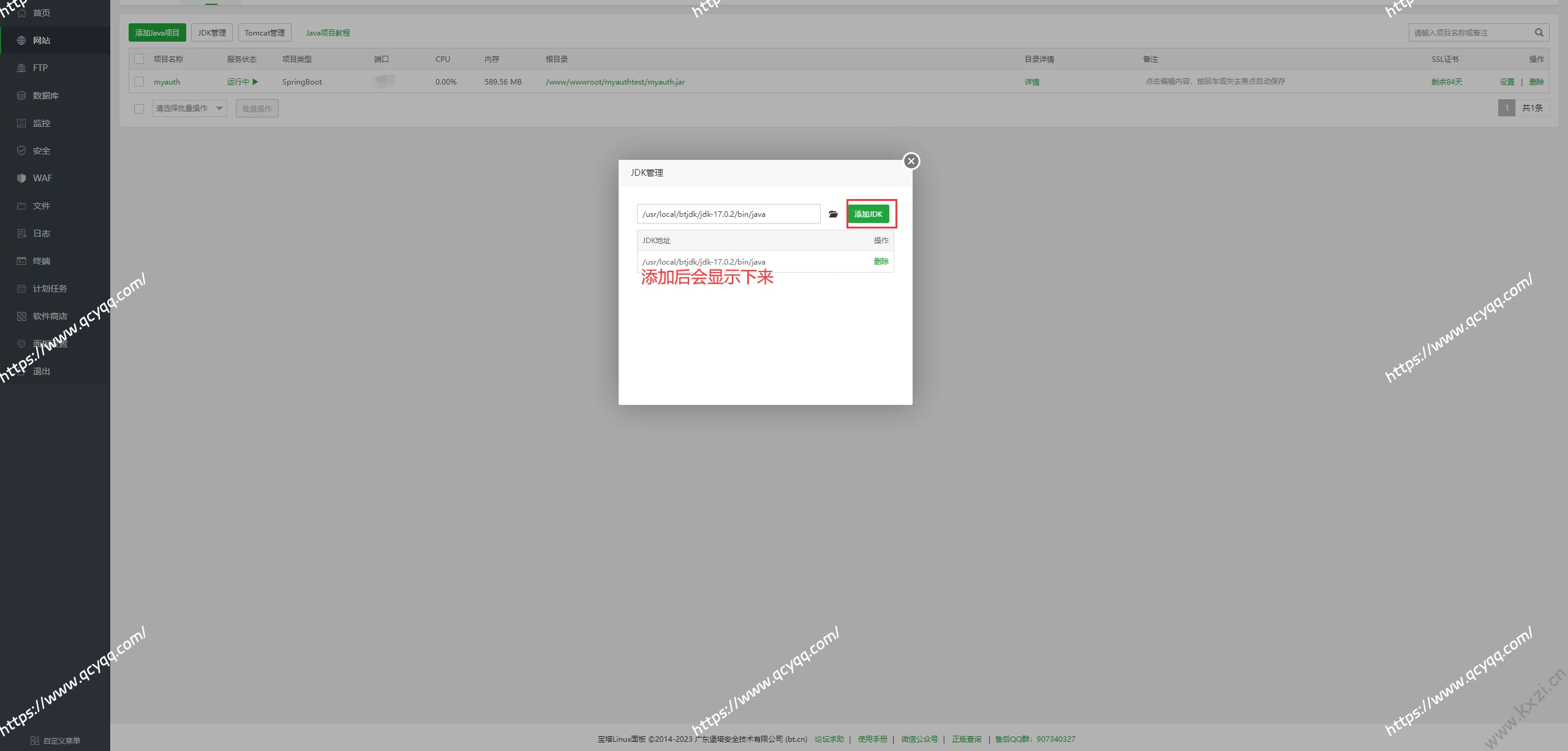 最新版宝塔可自动安装JDK,安装JDK-17即可