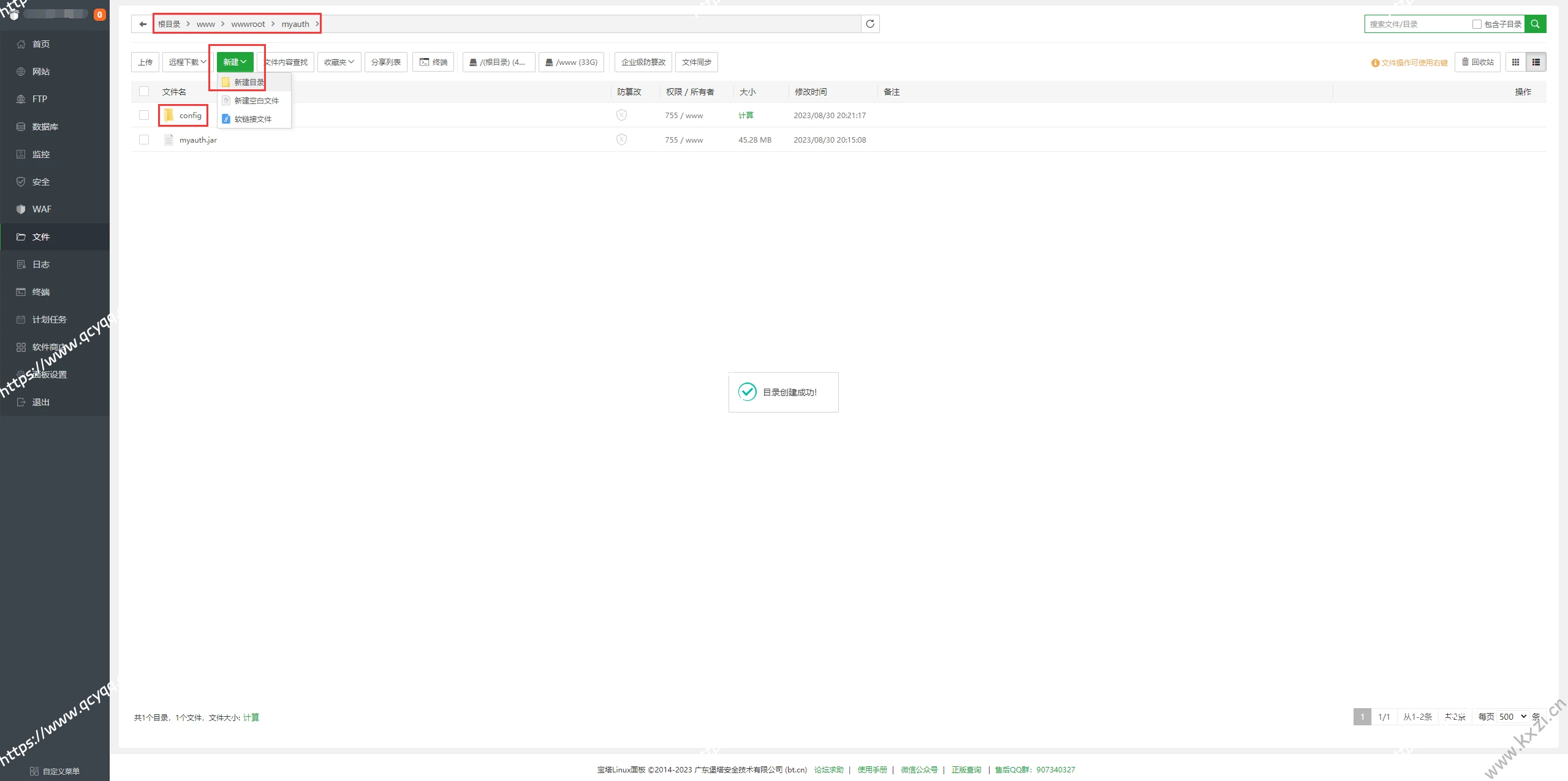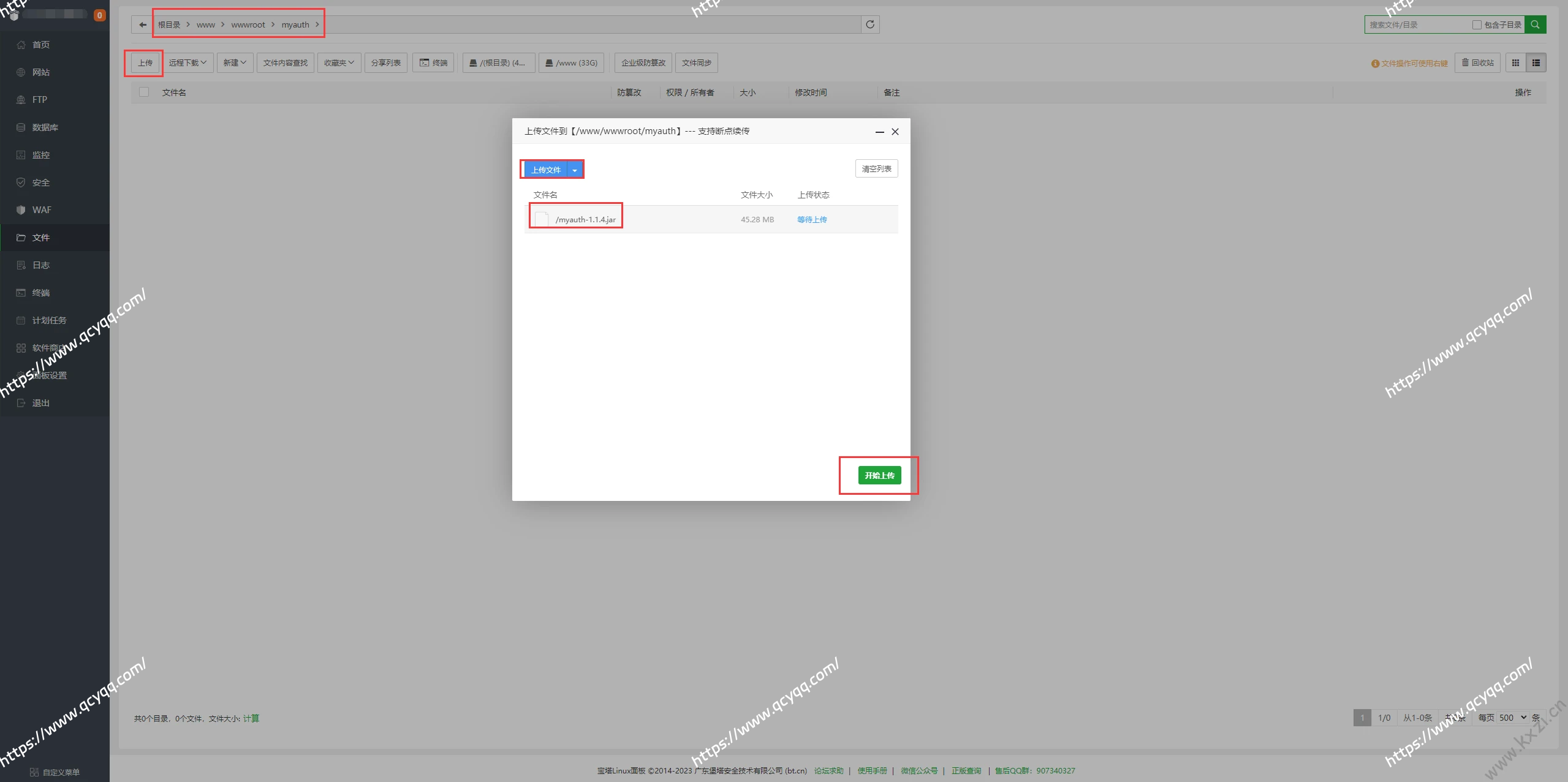 新建目录后点进目录进行上传文件(项目jar包已上传至群文件中,也可以在gitee上下载发行版)