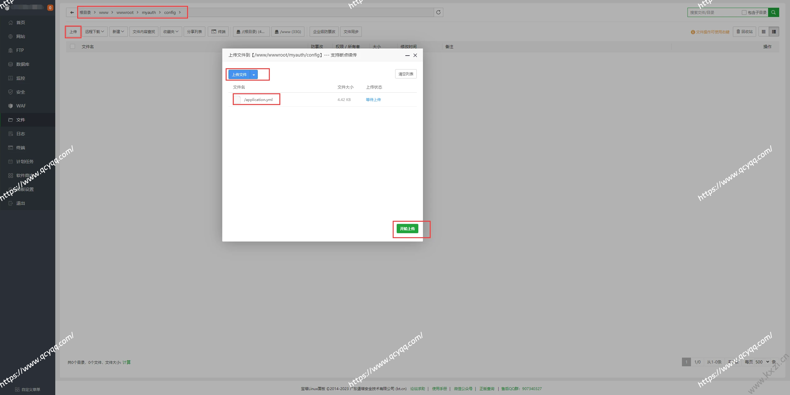 创建文件夹后点进文件夹进行上传【application.yml】配置文件(配置文件已经上传至群文件中)