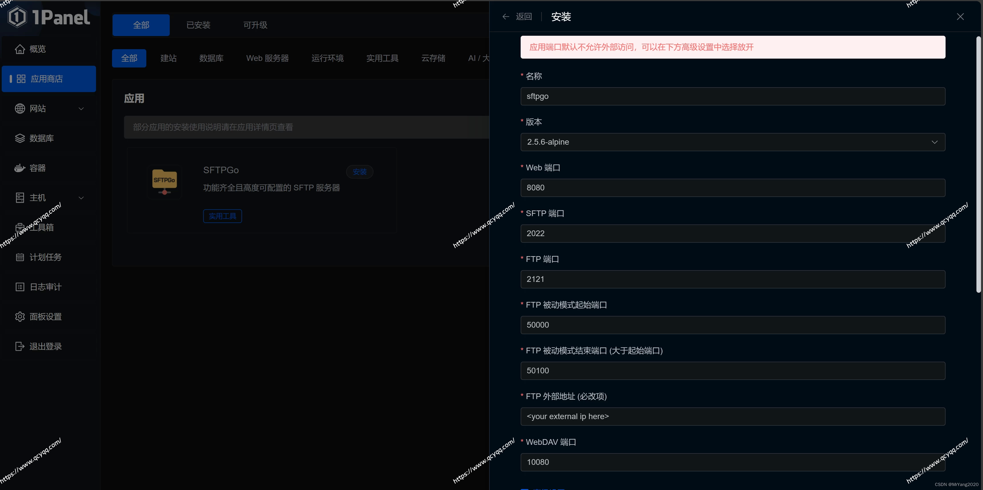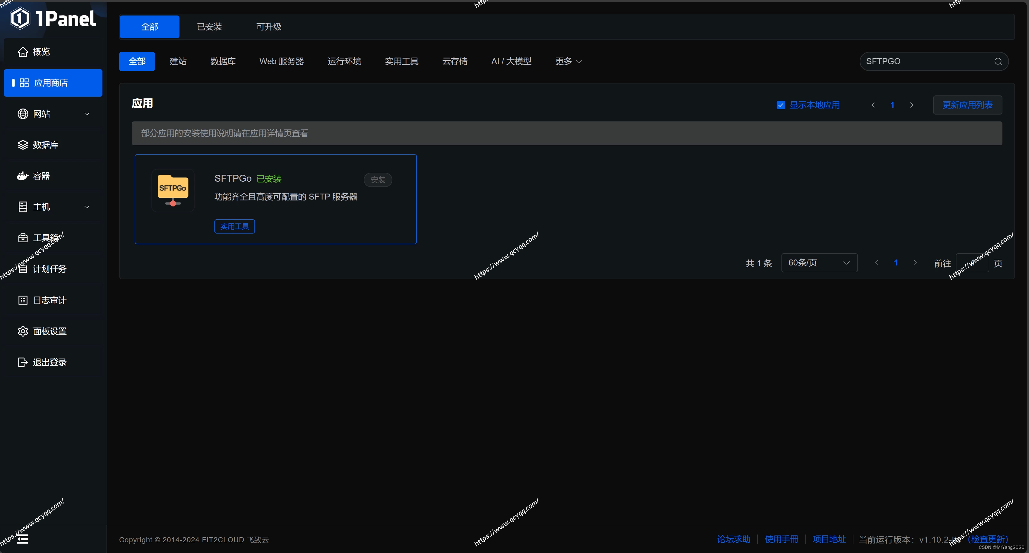 在可视化面板中找到应用商店,搜索SFTPGo,点击安装