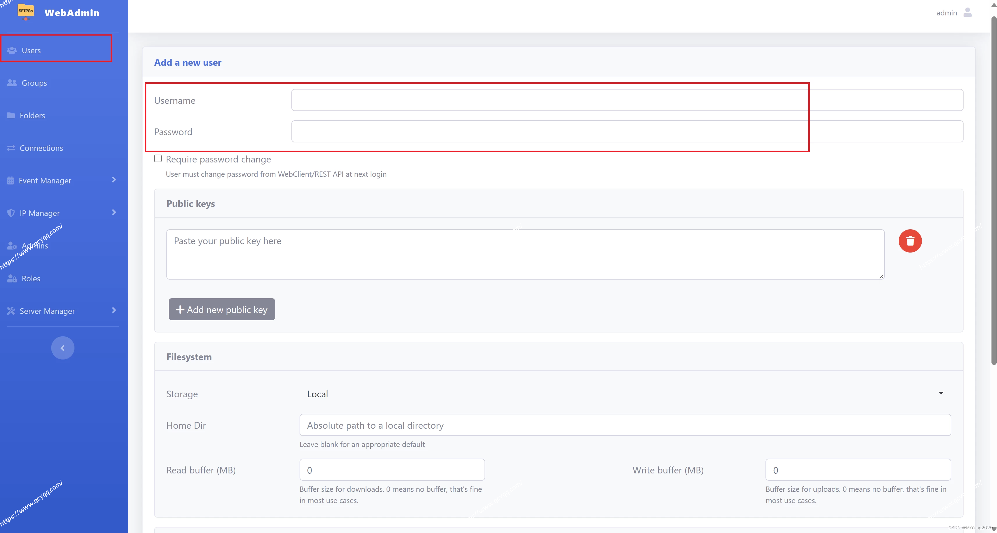 1Panel 系统借助 SFTPGo 应用,可以快速创建 SFTP、FTP 和 WebDAV 服务,支持多用户、多目录、多权限。