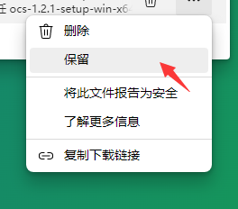 如果 edge 下载后弹出类似的框,点击 ,选择保留即可