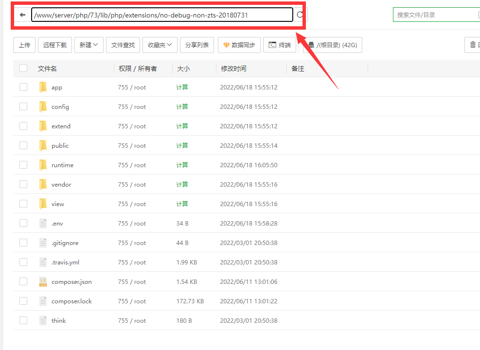 5.把复制得目录路径粘贴到对应位置并回车前往【这里以PHP7.3为例,其他PHP版本都一样得】