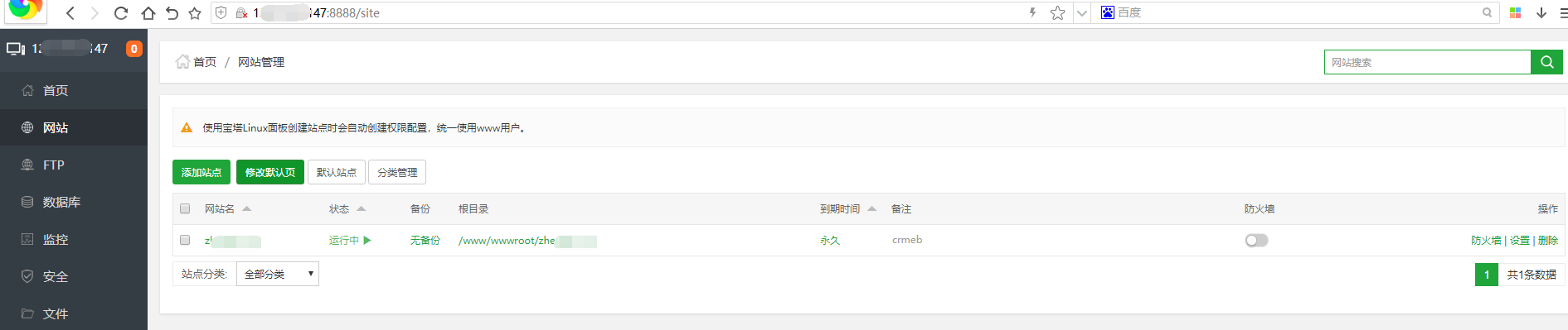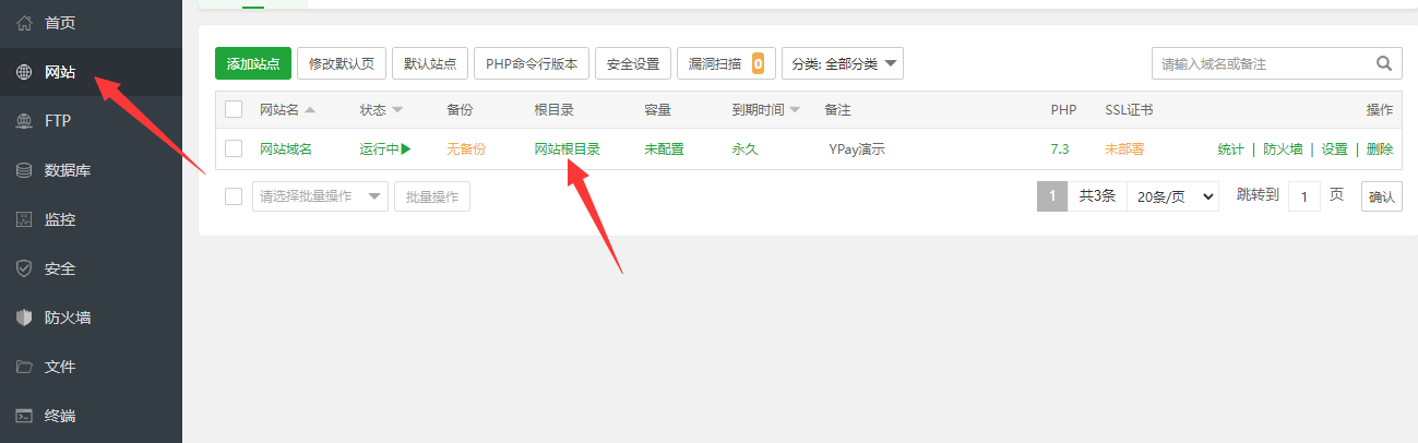 2.进入宝塔面板,选择左侧菜单网站,点击新建的站点进入根目录